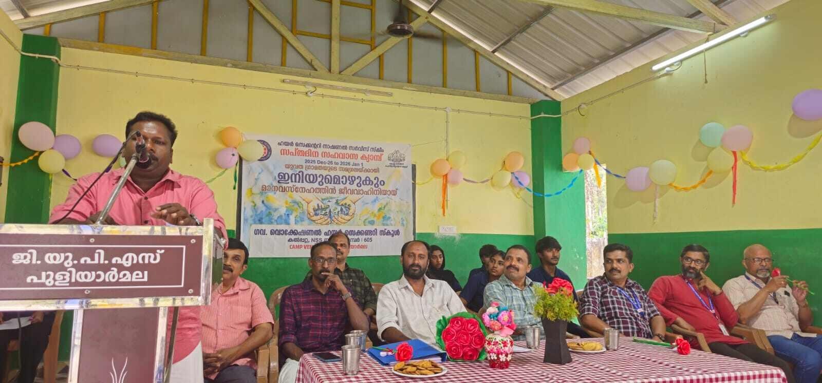 കൽപറ്റ:ഹയർസെക്കൻഡറി നാഷണൽ സർവീസ് സ്കീമിന്റെ ക്യാമ്പുകൾ ജില്ലയിൽ സമാപിച്ചു . ജില്ലയിൽ 59 യൂണിറ്റുകളിലാണ് ക്യാമ്പുകൾ നടന്നത്. യുവത ഗ്രാമതയുടെ സമഗ്രതയ്ക്കായി എന്ന ആശയത്തിൽ ഊന്നിയാണ് ഈ വർഷത്തെ ക്യാമ്പ് നടന്നത്. ഇനിയും ഒഴുകും മാനവ സ്നേഹത്തിൻ ജീവവാഹിനിയായി എന്നാണ് ക്യാമ്പിന്റെ ഈ വർഷത്തെ സംസ്ഥാനതലത്തിൽ അംഗീകരിച്ച പേര്.ക്യാമ്പിന്റെ ഭാഗമായി 59 അവണവാടികൾ “സ്നേഹാങ്കണം” പദ്ധതിയുടെ ഭാഗമായി ദത്തെടുത്ത് നവീകരിച്ചു. അങ്കണവാടി കുട്ടികൾക്ക് ആവശ്യമായ പഠനോപകരണങ്ങളും കളിപ്പാട്ടങ്ങളും കൈമാറി. ക്യാമ്പിന്റെ ഭാഗമായി ഡിജിറ്റൽ സാക്ഷരത, സുരക്ഷാ ബോധവൽക്കരണവും പ്രഥമശുശ്രൂഷ പരിശീലനവും, ലഹരി വിരുദ്ധ പ്രവർത്തനങ്ങൾ , അങ്കണവാടി ദത്തെടുത്ത് ഭൗതിക സാഹചര്യങ്ങൾ മെച്ചപ്പെടുത്തൽ, ക്യാമ്പ് പ്രദേശത്തെ വീടുകളിൽ ജൈവ പച്ചക്കറി കൃഷി എന്നീ പ്രവർത്തനങ്ങൾ സംഘടിപ്പിച്ചു. കൂടാതെ വൊളൻ്റിയർമാർക്ക് വ്യക്തിത്വ വികാസത്തിനുള്ള ക്ലാസുകൾ , എയ്ഡ്സ് ബോധവൽക്കരണ ക്ലാസുകൾ, ശുചിത്വ ബോധവൽക്കരണ പരിപാടികൾ , മൂല്യ വർധിത ഉൽപന്നങ്ങൾ നിർമിക്കാൻ പരിശീലനം എന്നിവയും സംഘടിപ്പിച്ചു . ക്യാമ്പിന്റെ ജില്ലാതല സമാപനം പുളിയാർമല ഗവ. യുപി സ്കൂളിൽ കൽപറ്റ മുൻസിപ്പൽ ചെയർമാൻ പി വിശ്വനാഥൻ നിർവഹിച്ചു. മുണ്ടേരി ഗവ. ഹയർ സെക്കൻഡറി സ്കൂളിന്റെ ക്യാമ്പാണ് പുളിയാർ മലയിൽ നടന്നത്. വാർഡ് കൗൺസിലർ ആർ രഞ്ജിത്ത് അധ്യക്ഷത വഹിച്ചു. കൗൺസിലർ രവി, എൻഎസ്എസ് ജില്ലാ കൺവീനർ കെ എസ് ശ്യാൽ, സ്കൂൾ പ്രിൻസിപ്പൽ പി.ടി സജീവൻ, ക്ലസ്റ്റർ കൺവീനർ വി പി സുഭാഷ്, പിടിഎ പ്രസിഡൻ്റ് സി ജയരാജൻ, ഹെഡ്മാസ്റ്റർ ജോസ് കെ സേവിയർ ,സീനിയർ അസിസ്റ്റൻറ് പ്രകാശ് വർമ്മ, എൻഎസ്എസ് പ്രോഗ്രാം ഓഫിസർ ദീപ്തി ദാസ് കെ , എൻഎസ്എസ് ലീഡർമാരായ അദ്വയ് മാധവ് റാം, പി എസ് അസ്റ ഫാത്തിമ എന്നിവർ സംസാരിച്ചു.