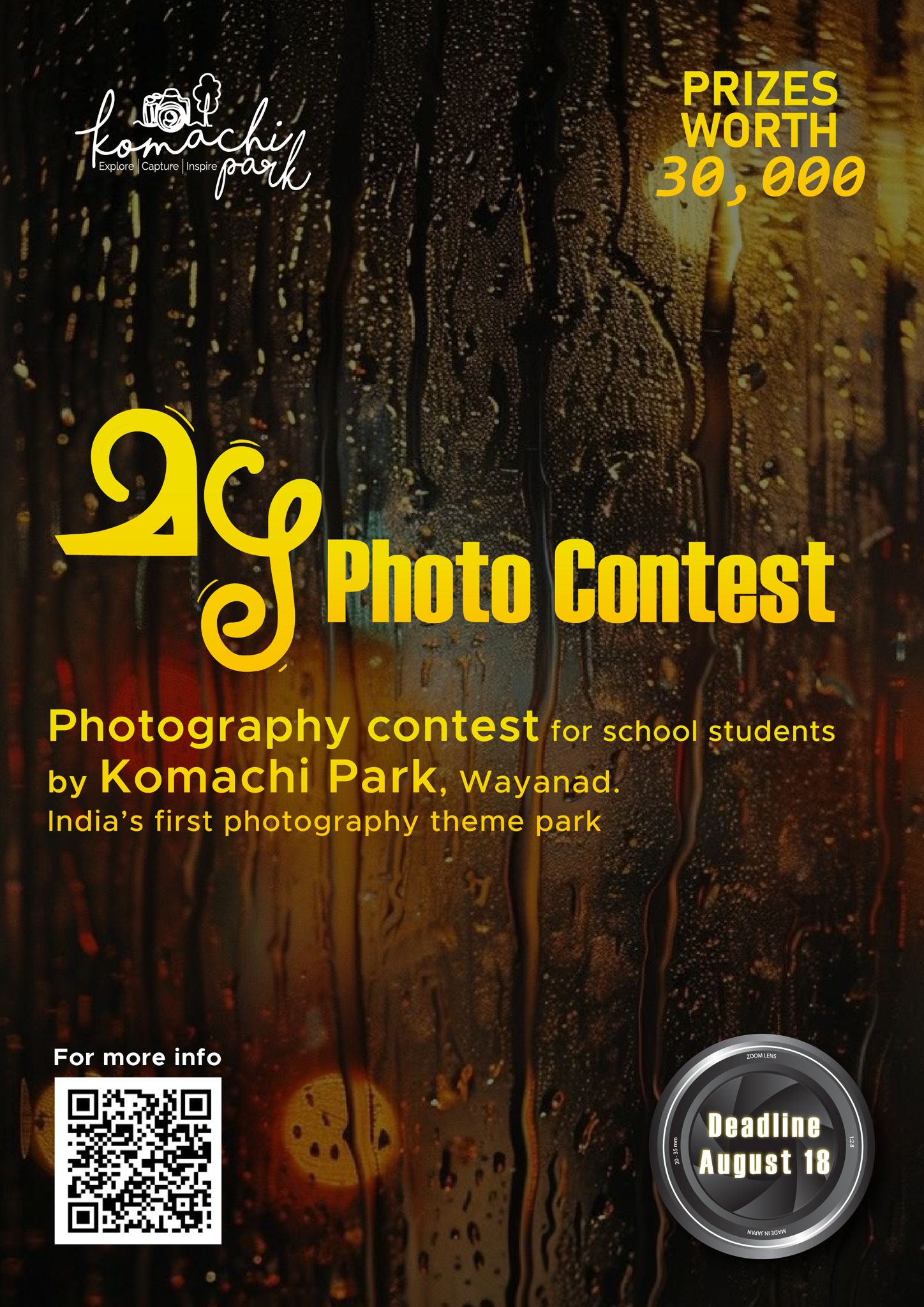വിദ്യാർത്ഥികളിലെ ഫോട്ടോഗ്രാഫി പ്രതിഭകളെ കണ്ടെത്തുന്നതിന്റെ ഭാഗമായി നടത്തുന്ന മൽസരത്തിൽ നിന്നും തെരഞ്ഞെടുക്കപ്പെടുന്ന 25 മൽസരാർത്ഥികൾക്ക് കൊമാച്ചി ഫോട്ടോഗ്രാഫി പാർക്കിൽ വെച്ച് ഫോട്ടോഗ്രാഫിയിൽ വിദഗ്ദ്ധ പരിശീലനം നൽകുന്നതാണ്.