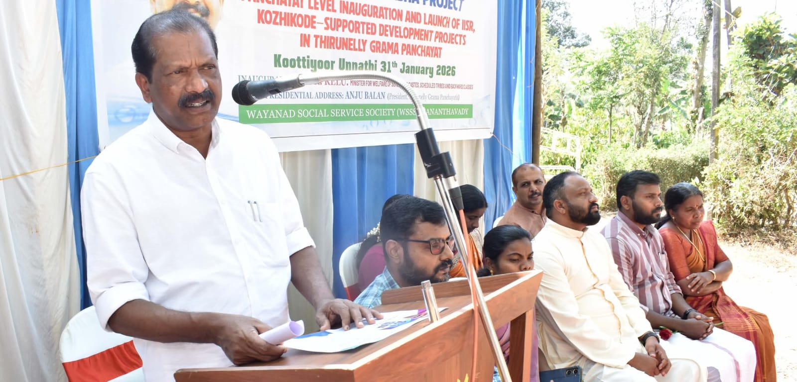 തിരുനെല്ലി ഗ്രാമപഞ്ചായത്ത് പ്രസിഡന്റ് അഞ്ചു ബാലന് അധ്യക്ഷയായ പരിപാടിയില് ജില്ലാ പഞ്ചായത്ത് അംഗം കെ.ആര് ജിതിന്, ബ്ലോക്ക് പഞ്ചായത്ത് അംഗം സി. ആര് ഷീല, സ്റ്റാന്റിങ് കമ്മിറ്റി ചെയര്മാന്മാരായ എ. കെ ജയഭാരതി, കെ. സിജിത്, കെ.ടി ശര്മിനാസ്, സോഷ്യല് സര്വീസ് സൊസൈറ്റി എക്സിക്യൂട്ടീവ് ഡയറക്ടര് ഫാ. സിനോജ് പാലാത്താടത്തില്,സോഷ്യല് സര്വീസ് സൊസൈറ്റി പ്രോഗ്രാം ഓഫീസര് പി. എ ജോസ്, കോഴിക്കോട് ഐ.ഐ.എസ്.ആര് സീനിയര് സയന്റിസ്റ്റ് ഡോ. ലിജോ തോമസ്, ട്രൈബല് എക്സ്റ്റന്ഷന് ഓഫീസര് നജുമുദ്ധീന്, തോല്പ്പെട്ടി ഡിവിഷന് റേഞ്ച് ഫോറസ്റ്റ് ഓഫീസര് ഷിബു കുട്ടന്, തിരുനെല്ലി കൃഷി ഓഫീസര് അശ്വതി, ബ്രഹ്മഗിരി നീര്ത്തട പദ്ധതി സെക്രട്ടറി ജയകൃഷ്ണന്, ഊര് മൂപ്പന് പുട്ടന്,സോഷ്യല് സര്വീസ് സൊസൈറ്റി ടീം ലീഡര് ദീപു ജോസഫ് എന്നിവര് പങ്കെടുത്തു.