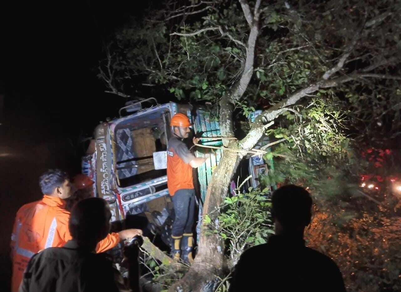 ഇന്നു (വ്യാഴം) പുലർച്ചെ 4.30 ന് മൂലങ്കാവ് ക്ലൂണി സ്കൂളിനു സമീപമായിരുന്നു അപകടം. കണ്ണൂരിൽ നിന്നു നെല്ലൂരിലേക്ക് പ്ലൈവുഡുമായി പോകുന്ന ലോറി, ഡ്രൈവർ ഉറങ്ങിപ്പോയതിനെ തുടർന്ന് റോഡരികിലെ മരത്തിൽ ഇടിച്ച് മറിയുകയുകയായിരുന്നു. ഡ്രൈവർ ലോറിക്കുള്ളിൽ കുടുങ്ങിപ്പോയി.വിവരം ലഭിച്ചതിനെ തുടർന്ന് ബത്തേരി അഗ്നിരക്ഷാ നിലയത്തിലെ സ്റ്റേഷൻ ഓഫിസർ പി.കെ.ശരത്തിൻ്റെ നേതൃത്വത്തിൽ സേനാഗംങ്ങൾ സംഭവസ്ഥലത്ത് എത്തുകയും സ്റ്റിയറിങ് വീൽ, സീറ്റ് എന്നിവ ഹൈഡ്രോളിക് കട്ടർ ഉപയോഗിച്ച് മുറിച്ച് മാറ്റി ഡ്രൈവറെ പുറത്ത് എടുത്ത് ബത്തേരി താലൂക്ക് ആശുപത്രിയിൽ എത്തിച്ചു. സീനിയർ ഫയർ ആൻഡ് റെസ്ക്യു ഓഫിസർമാരായ വിനു ടി .കെ ,സന്തോഷ് കുമാർ കെ.വി ഫയർ ആൻഡ് റെസ്ക്യു ഓഫിസർമാരായ ഗോപിനാഥൻ ടി.പി,മിഥുൻ പി.ആർ, നിധിൻ വി.എം , സുധീഷ് .കെ , അർജുൻ .പി.രഘു, അമൽ ജോൺ,അക്ഷയ് വി.കെ ഫയർ ആൻഡ് റെസ്ക്യു ഓഫിസർ ഡ്രൈവർമാരായ രാജേഷ് എൻ.ടി, ബിനോയ് പി.വി ഫയർ ആൻഡ് റെസ്ക്യു ഓഫിസർ ട്രെയ്നിങ്ങിലുള്ള അഷൽ, അക്ഷയ് പി.പി, ജിജു കെ .വി ഹോം ഗാർഡുമാരായ ഫിലിപ്പ് എബ്രഹാം ,ബാലൻ പി.കെ ,സുബീഷ് കുമാർ എന്നിവർ രക്ഷാ പ്രവർത്തനത്തിൽ പങ്കെടുത്തു.