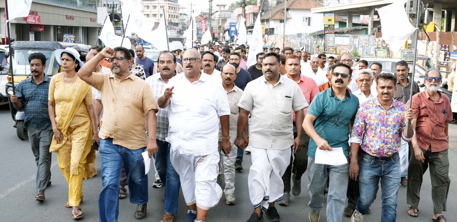 കഴിഞ്ഞദിവസം കൽപ്പറ്റ ടൗണിൽ ഇത്തരത്തിലുള്ള കച്ചവടം നടത്തുന്നതിന് അനുമതിയില്ലായെന്ന് ഭാരവാഹികൾ സൗമ്യമായി പറഞ്ഞപ്പോൾ യൂണിറ്റ് പ്രസിഡണ്ട് ഇ ഹൈദ്രുവിനേയും യൂത്ത് വിംഗ് പ്രസിഡണ്ട് ഷൈജലിനേയും എക്സിക്യൂട്ടീവ് അംഗം ബാവ എന്നിവരെ ധിക്കാരപരമായി പെരുമാറുകയും ക്രൂരമായി കയ്യേറ്റം ചെയ്യുകയും ചെയ്തതിൽ പ്രതിഷേധിച്ച് കേരളാ വ്യാപാരി വ്യവസായി ഏകോപന സമിതി ജില്ലാ കമ്മിറ്റി ആഹ്വാനം ചെയ്ത പ്രതിഷേധ പ്രകടനം കൽപ്പറ്റയിൽ കനറ ബാങ്ക് പരിസരത്ത് നിന്ന് ആരംഭിച്ച് പുതിയസ്റ്റാൻറ് പരിസരത്ത് സമാപിച്ചു….. പ്രതിഷേധയോഗം ജില്ലാ പ്രസിഡണ്ട് ജോജിൻ ടി ജോയ് ഉദ്ഘാടനം ചെയ്തു….. യൂണിറ്റ് പ്രസിഡണ്ട് അധ്യഷത വഹിച്ചു…… ജനറൽസെക്രട്ടറി രഞ്ജിത് കെ , ട്രഷറർ കെകെ ജോൺസൺ, ജില്ലാ സെക്രട്ടറി അജിത് PV, ഷാജി കല്ലടാസ്, ഹാരിസ് ടി, അബ്ദുറഹിമാൻ തനിമ , ജോൺ മാതാ,ഗോൾഡ് അസോസിയേഷൻ സെക്രട്ടറി സിദ്ധീഖ് കെ എച്ച്, കെഎച്ച്ആർഎ കൽപ്പറ്റ യൂണിറ്റ് പ്രസിഡൻ്റ് അബ്ദുറഹിമാൻ പ്രാണിയത്ത് വനിതാ വിംഗ് പ്രസിഡണ്ട് സൗദ, വനിതാ വിങ്ങ് ജില്ലാ ട്രഷറർ അമ്പിളി, എന്നിവർ പ്രസംഗിച്ചു,