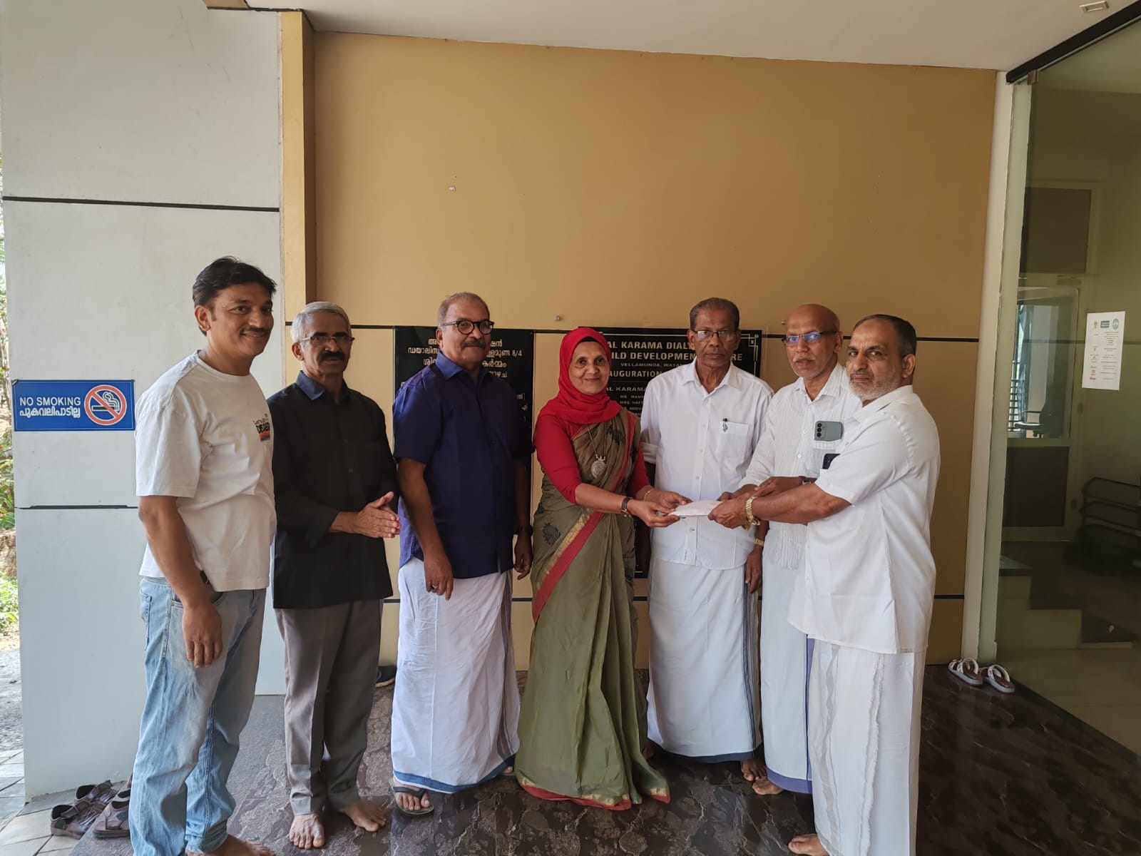 വെള്ളമുണ്ട 8/4 വ്യാപാരി വ്യവസായി ഏകോപന സമിതി സമാഹരിച്ച സഹായധനം 25194 രൂപ ഭാരവാഹികൾ അൽ കറാമ ഡയാലിസ് സെൻറ റിന് വേണ്ടി പഞ്ചായത്ത് പ്രസിഡണ്ട് ഖമർ ലൈലക്ക് കൈമാറി.