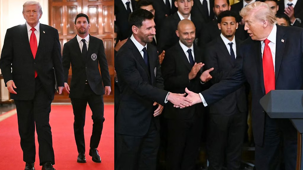 ചടങ്ങിനിടെ മെസി ട്രംപിന് മയാമിയുടെ ജേഴ്സി കളറായ പിങ്ക് നിറത്തിലുള്ള ഫുട്ബോളും ഒപ്പിട്ട് സമ്മാനിച്ചു. ടീം അധികൃതര് ജേഴ്സിയും വാച്ചും ട്രംപിനു സമ്മാനമായി നല്കി. മേജര് ലീഗ് സോക്കര് ചാംപ്യന്മാരാകുന്ന ടീമുകള് വൈറ്റ് ഹൗസില് എത്തി പ്രസിഡന്റിനൊപ്പം വിജയം ആഘോഷിക്കുന്ന പതിവുണ്ട്. ഇതിന്റെ ഭാഗമായാണ് മെസി അടക്കമുള്ള ടീം അംഗങ്ങള് വൈറ്റ് ഹൗസിലെത്തി ട്രംപിനൊപ്പം ജയം ആഘോഷിച്ചത്.