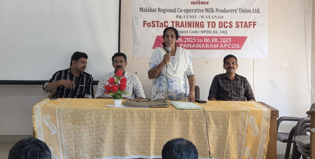 പരിശീലന പരിപാടി മലബാർ മിൽമ ഭരണസമിതിയംഗം റോസിലി തോമസ് ഉദ്ഘാടനം ചെയ്തു. പി ആൻ്റ് ഐ യൂണിറ്റ് ഹെഡ് പ്രദീപൻ പി.പി. അധ്യക്ഷത വഹിച്ചു. ഫുഡ് സേഫ്റ്റി ആൻഡ് സ്റ്റാൻഡേർഡ്സ് അതോറിറ്റി ഓഫ് ഇന്ത്യയുടെ അംഗീകൃത ട്രെയിനർമാരായ മിൽമ വെറ്ററിനറി ഓഫിസർ ഡോ. അഹമ്മദ് ഖൈസ് , ടെക്നിക്കൽ ഓഫിസർ ആദർശ് സി. എന്നിവർ ക്ലാസെടുത്തു.
