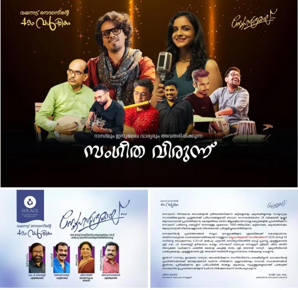 തുടർന്ന് റാസയും ഇന്ദുലേഖ വാര്യരും ഒരുക്കുന്ന സംഗീത വിരുന്നിൽ പങ്കെടുക്കുന്നതിനും സൊലസിന്റെ പ്രവർത്തനങ്ങൾ ജനങ്ങളിലേക്ക് എത്തിക്കുന്നതിന്