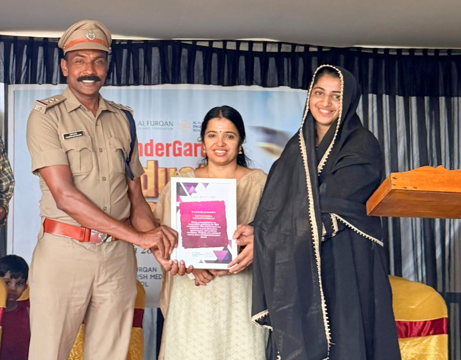 ഹയർ സെക്കൻഡറി അധ്യാപകരാകാനും വൊക്കേഷണൽ ഹയർ സെക്കൻഡറി നോൺ വൊക്കേഷണൽ അധ്യാപകരാകാനും നിർബന്ധമായ, അർഹതാനിർണയപരീക്ഷയായ സ്റ്റേറ്റ് എലിജിബിലിറ്റി ടെസ്റ്റ് (സെറ്റ്) നേടിയ കെ. എം നൗഷിദയെ അൽ ഫുർഖാൻ കോളേജ് അനുമോദിച്ചു.