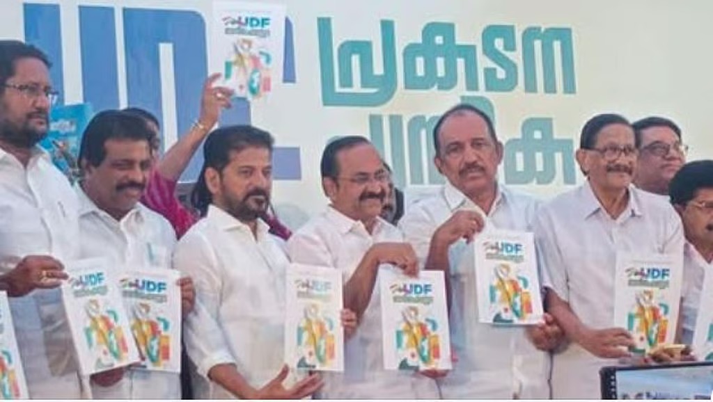 കൊച്ചി: നിയമസഭാ തെരഞ്ഞെടുപ്പില്‍ യുഡിഎഫിന്റെ പ്രകടന പത്രിക തെലങ്കാന മുഖ്യമന്ത്രി രേവന്ത് റെഡ്ഡി പുറത്തിറക്കി. ‘കേരളം ജയിക്കും യുഡിഎഫ് നയിക്കും’ എന്ന മുദ്രാവാക്യം മുന്നോട്ടുവയ്ക്കുന്ന പ്രകടനപത്രികയില്‍ സ്ത്രീകള്‍ക്ക് കെഎസ്ആര്‍ടിസി ബസുകളില്‍ സൗജന്യ യാത്ര, കോളജ് വിദ്യാര്‍ഥിനികള്‍ക്ക് 1000 രൂപ പ്രതിമാസ ധനസഹായം, ക്ഷേമ പെന്‍ഷനുകള്‍ 3000 രൂപയായി വര്‍ധിപ്പിക്കും, എല്ലാ കുടുംബങ്ങള്‍ക്കും 25 ലക്ഷം രൂപവരെ സൗജന്യ ഉമ്മന്‍ ചാണ്ടി ആരോഗ്യ ഇന്‍ഷുറന്‍സ്, യുവജനങ്ങള്‍ക്ക് ബിസിനസ് ആരംഭിക്കുന്നതിന് പലിശ രഹിത വായ്പ 5 ലക്ഷം, മുതിര്‍ന്ന പൗരന്മാരുടെ ക്ഷേമത്തിനായി പ്രത്യേക വകുപ്പ് തുടങ്ങിയവയാണ് പ്രധാന വാഗ്ദാനങ്ങള്‍.