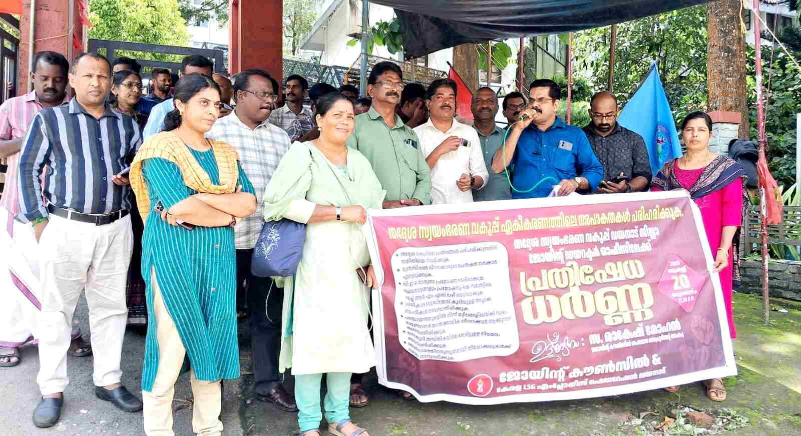 ധർണ ജോയിൻ്റ് കൗൺസിൽ സംസ്ഥാന സെക്രട്ടേറിയറ്റ് അംഗം രാകേഷ് മോഹൻ ഉദ്ഘാടനം ചെയ്തു. ജോയിൻ്റ് കൗൺസിൽ ജില്ലാ പ്രസിഡൻ്റ് പ്രിൻസ് തോമസ് അധ്യക്ഷത വഹിച്ചു. ജോയിൻ്റ് കൗൺസിൽ ജില്ലാ സെക്രട്ടറി സുനിൽമോൻ ടി ഡി സ്വാഗതവും ജോയിൻ്റ് കൗൺസിൽ സംസ്ഥാന കമ്മിറ്റി അംഗം ജയപ്രകാശ് എം പി, കെ എൽ ഇ എഫ് ജില്ലാ സെക്രട്ടറി രേഖ സി എം എന്നിവർ അഭിവാദ്യവും അർപ്പിച്ചു.