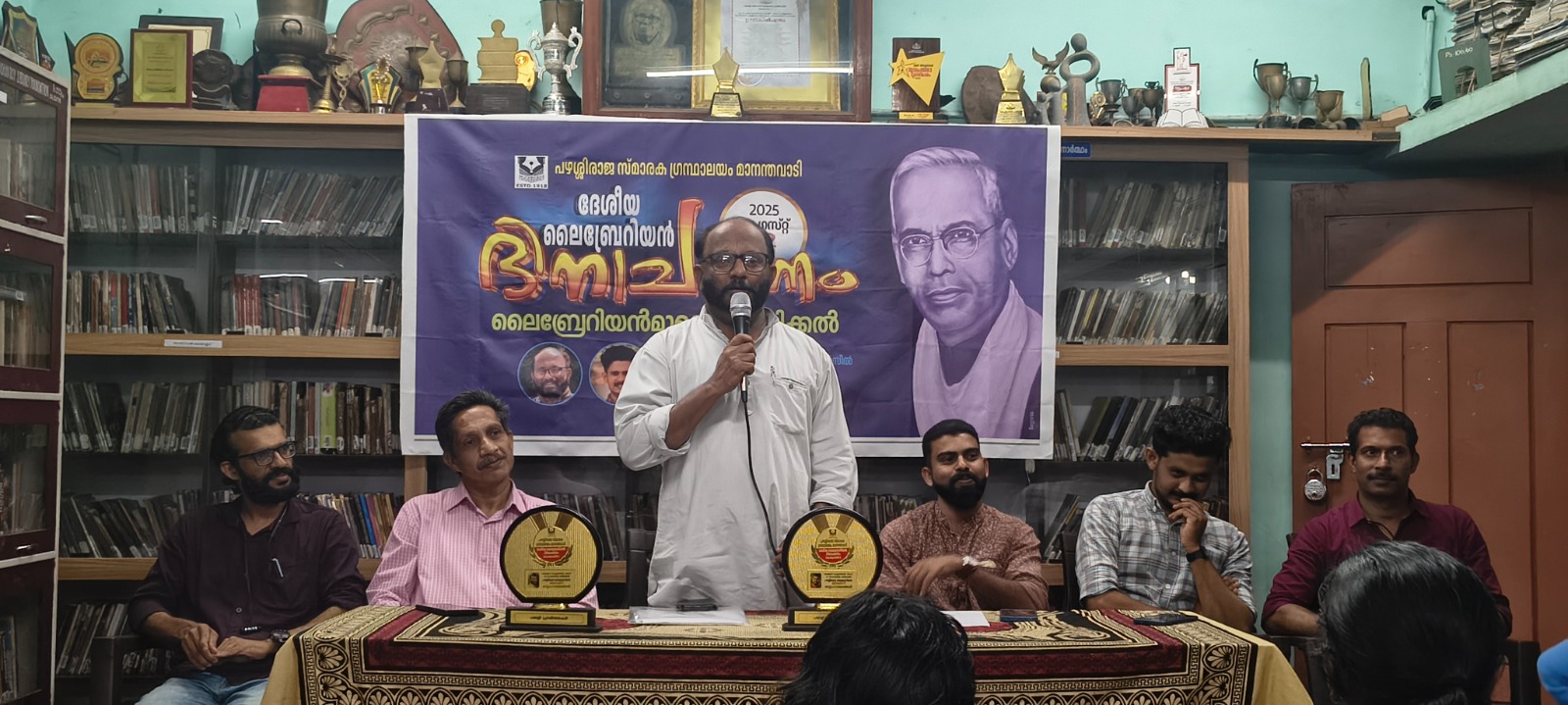 മാനന്തവാടി- ലൈബ്രറി സയൻസിൻ്റെ പിതാവായ എസ് ആർ രംഗനാഥൻ്റെ ജൻമദിനത്തിൽ പഴശ്ശി ഗ്രന്ഥാലയത്തിൻ്റെ ലൈബ്രേറിയൻമാരായ ഷിനോജ് വി.പി യെയും ജിതിൻ എം.സിയെയും ഗ്രന്ഥാലയം ആദരിച്ചു. ഗ്രന്ഥാലയം ഹാളിൽ വെച്ച് നടന്ന പ്രസ്തുത പരിപാടി താലൂക്ക് ലൈബ്രറി കൗൺസിൽ ജോ.സെക്രട്ടറി സുഭാഷ് പി ടി ഉൽഘാടനം ചെയ്തു. ഗ്രന്ഥാലയം ജോ .സെക്രട്ടറി എ.അയൂബ് അദ്ധ്യക്ഷത വഹിച്ചു. ജില്ലാ ലൈബ്രറി എക്സിക്യൂട്ടീവ് അംഗം ഷാജൻ ജോസ്, പഴശ്ശി ഗ്രന്ഥാലയം എക്സിക്യൂട്ടീവ് അംഗം വിനോദ് കുമാർ എസ് ജെ താലൂക്ക് ലൈബ്രറി കൗൺസിൽ അംഗം പ്രസാദ് വി.കെ, ഹുസൈൻ വി, എം ഗംഗാധരൻ മാസ്റ്റർ തുടങ്ങിയവർ ആശംസകളർപ്പിച്ചു. ലൈബ്രേറിയൻമാരുടെ മറുപടി പ്രസംഗത്തോടെ ലളിതസുന്ദരമായ ചടങ്ങ് അവസാനിച്ചു.