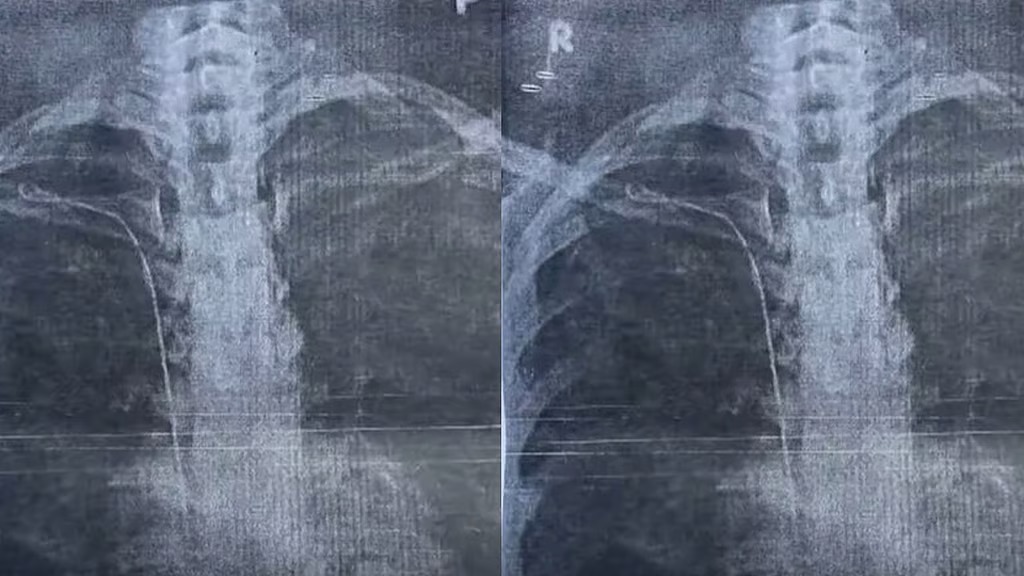2023 മാര്ച്ച് 22ന് നടന്ന തൈറോയ്ഡ് ശസ്ത്രക്രിയയ്ക്കിടെയാണ് ട്യൂബ് കുടുങ്ങിയതെന്നാണ് യുവതിയുടെ പരാതിയില് പറയുന്നത്. ശ്വാസം മുട്ടലിനെ തുടര്ന്ന് നടത്തിയ പരിശോധനയിലാണ് നെഞ്ചില് ട്യൂബ് കിടക്കുന്നതായി അറിഞ്ഞതെന്നും യുവതി പറയുന്നു. എക്സ്റേയില് നിന്നാണ് സംഭവം അറിയുന്നത്. മരുന്നിനുള്ള ട്യൂബിട്ടവരാണ് ഉത്തരവാദികളെന്നും ഡോക്ടര് ചൂണ്ടിക്കാട്ടുന്നു. ശ്രീചിത്രയില് നടത്തിയ പരിശോധനയിലാണ് ഗൈഡ് വയറാണെന്ന് മനസിലാകുന്നത്.