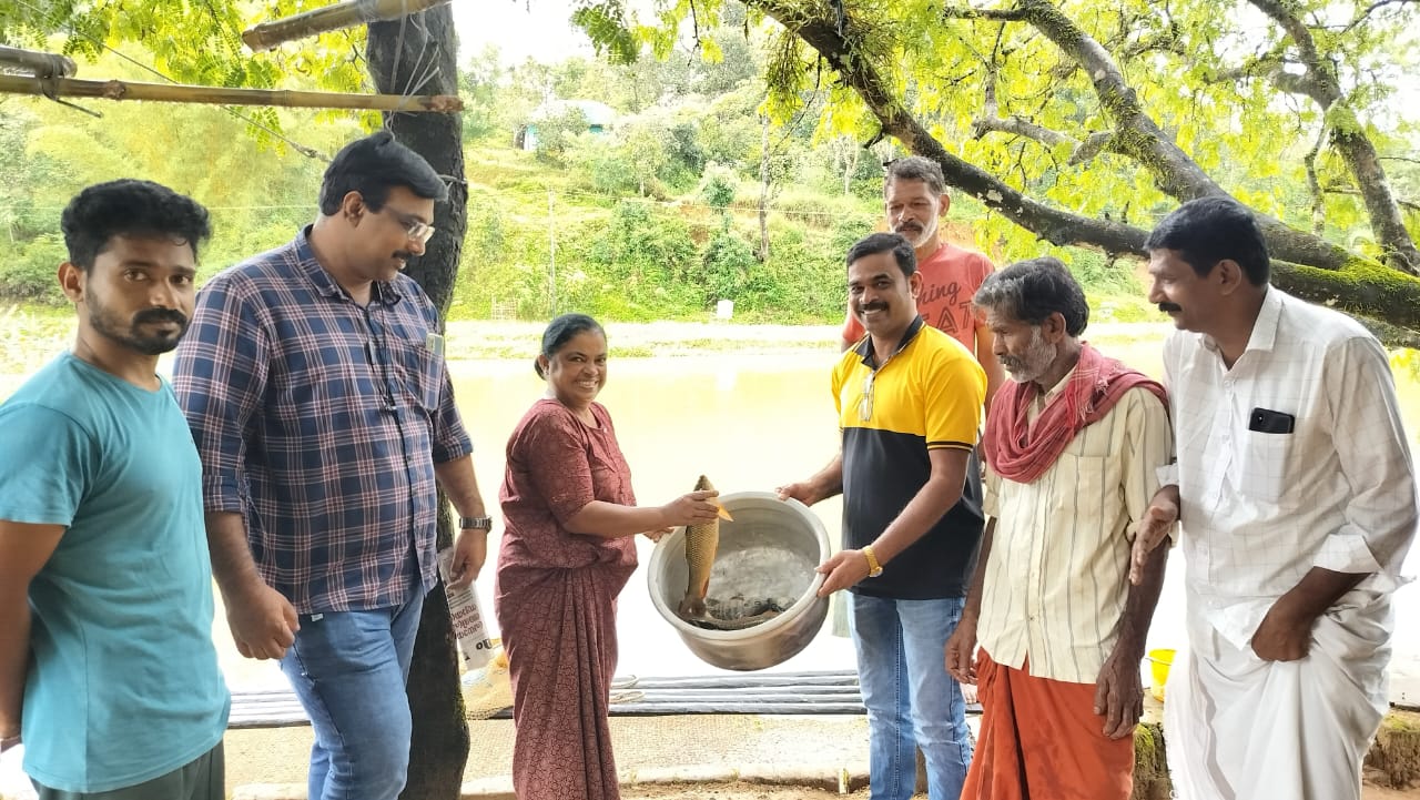 കാവുംമന്ദം: ഓണക്കാലത്ത് ജനങ്ങൾക്ക് പോഷക സമൃദ്ധമായതും ശുദ്ധവുമായ മത്സ്യം ലഭ്യമാക്കുക എന്ന ലക്ഷ്യത്തോടെ ഫിഷറീസ് വകുപ്പ് തരിയോട് ഗ്രാമപഞ്ചായത്തിൻ്റെ സഹകരണത്തോടെ കുനിയമ്മൽ തറവാട്ട് കുളത്തിൽ നല്ലോണം മീനോണം മത്സ്യ വിളവെടുപ്പുത്സവം സംഘടിപ്പിച്ചു. തരിയോട് ഗ്രാമപഞ്ചായത്ത് പ്രസിഡണ്ട് ഷമീം പാറക്കണ്ടി വിളവെടുപ്പ് ഉദ്ഘാടനം ചെയ്തു. ഗ്രാമപഞ്ചായത്ത് അംഗം ചന്ദ്രൻ മടത്തുവയൽ അധ്യക്ഷത വഹിച്ചു. 52 സെൻറ് വിസ്തൃതിയുള്ള കുളത്തിൽ ശുദ്ധജല മത്സ്യ കർഷകയായ ലക്ഷ്മി രാധാകൃഷ്ണനാണ് മത്സ്യകൃഷി ചെയ്തു വരുന്നത്. അക്വാകൾച്ചർ പ്രൊമോട്ടർ രാജി ഹരീന്ദ്രനാഥ്, അച്ചപ്പൻ കുനിമ്മൽ, കെ ആർ രാധാകൃഷ്ണൻ, കെ വി ശ്രീജിത്ത്, റഷീദ് തുടങ്ങിയവർ പങ്കെടുത്തു..